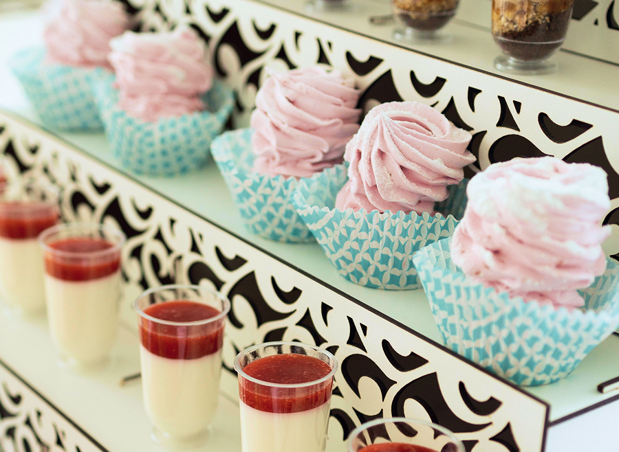До нашого кенді-бару входять міні-десерти, авторські тістечка, крафтовий зефір, печиво ручної роботи, фруктові композиції, а також можливість додати шоколадний або напійний фонтан.